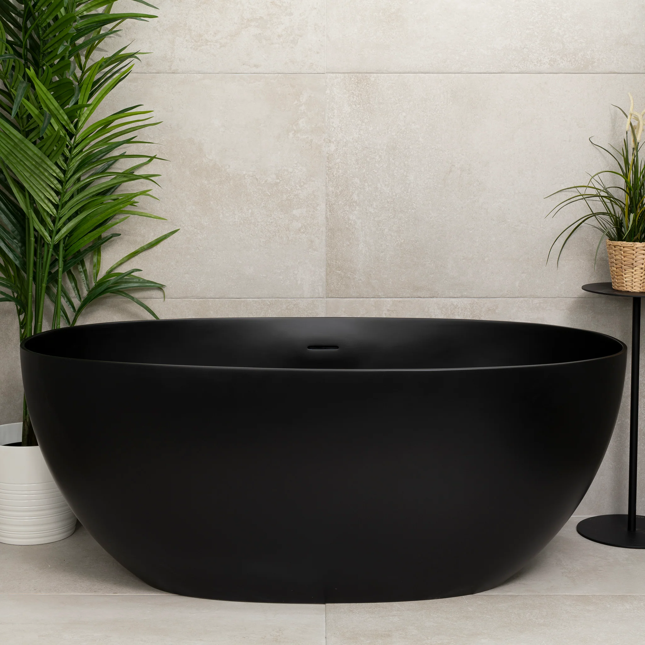 Byron Egg 1400mm Oval Artificial Stone Freestanding Bath, Matte Black