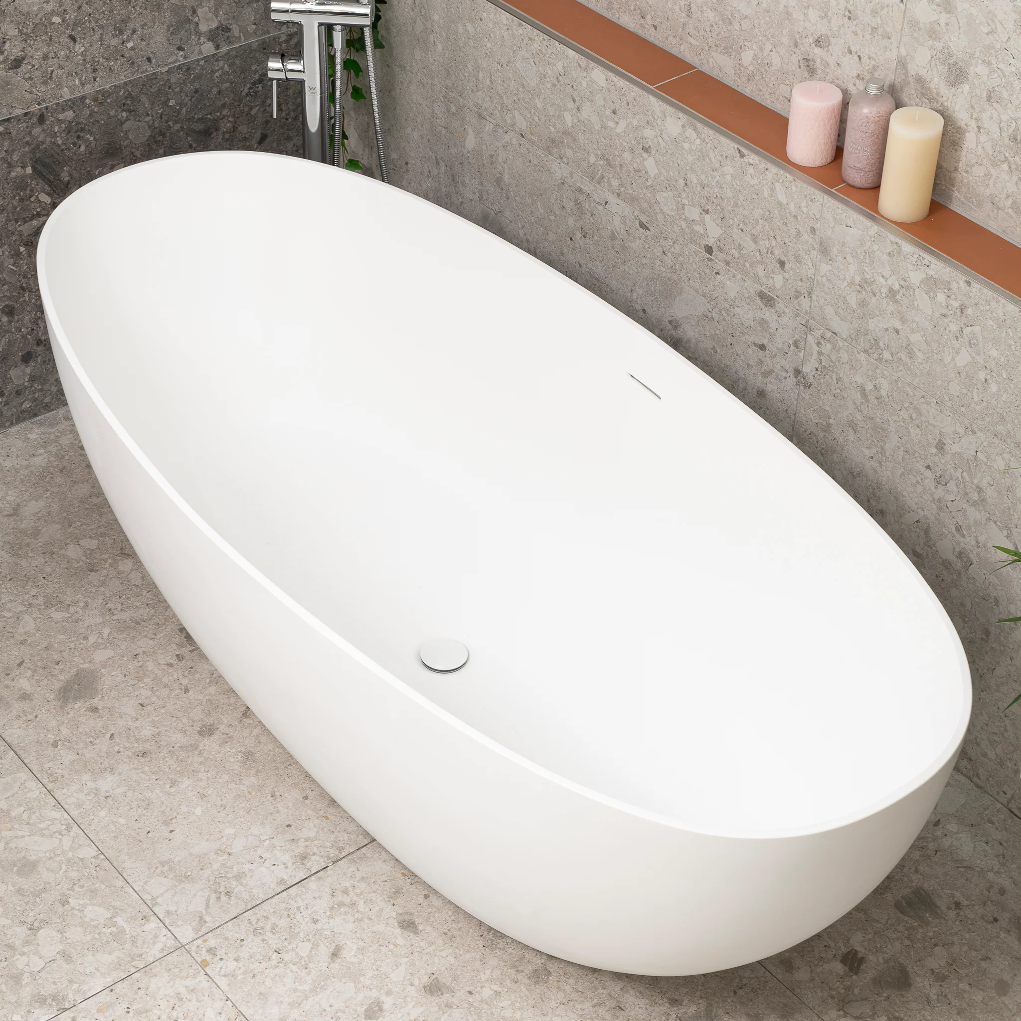 Byron Egg 1700mm Oval Artificial Stone Freestanding Bath, Matte White