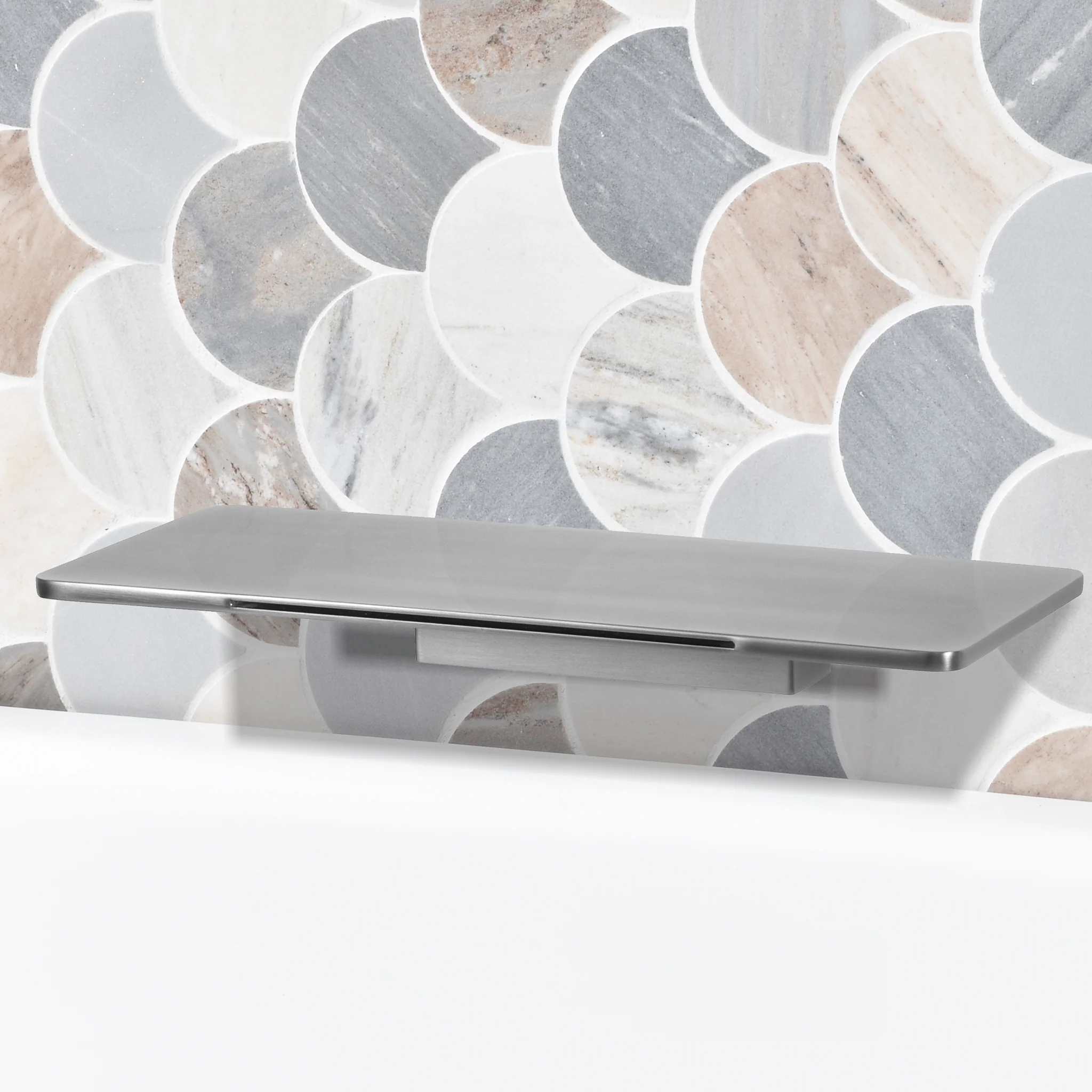 Refined and elegant, this shelf designed waterfall bath spout adds practicality and function to the contemporary look of your bathroom.