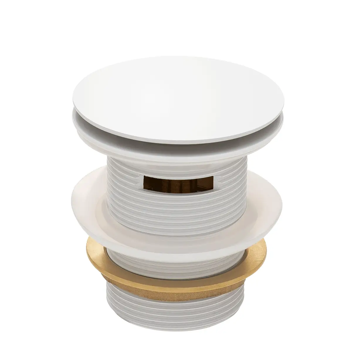 Dome Pop Short Bath Waste 40mm with Overflow and Pull-Out Basket, Gloss White
