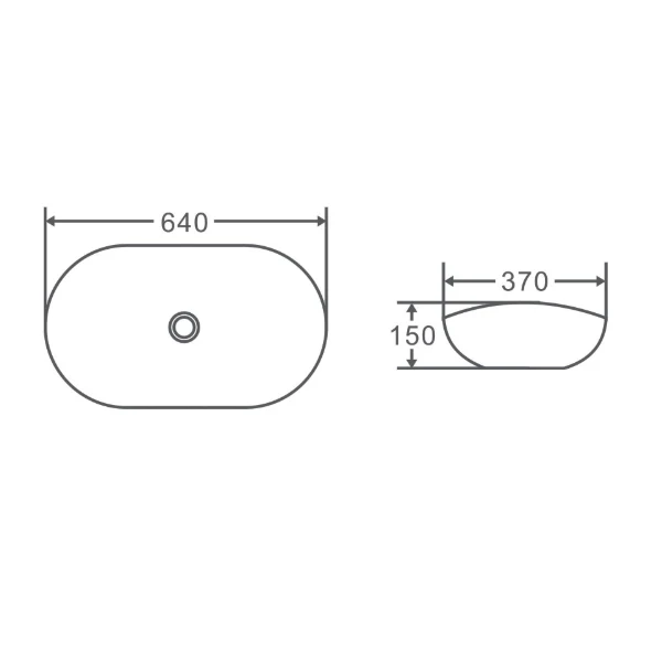 - 640mm (L) x 370mm (W) x 150mm (H)