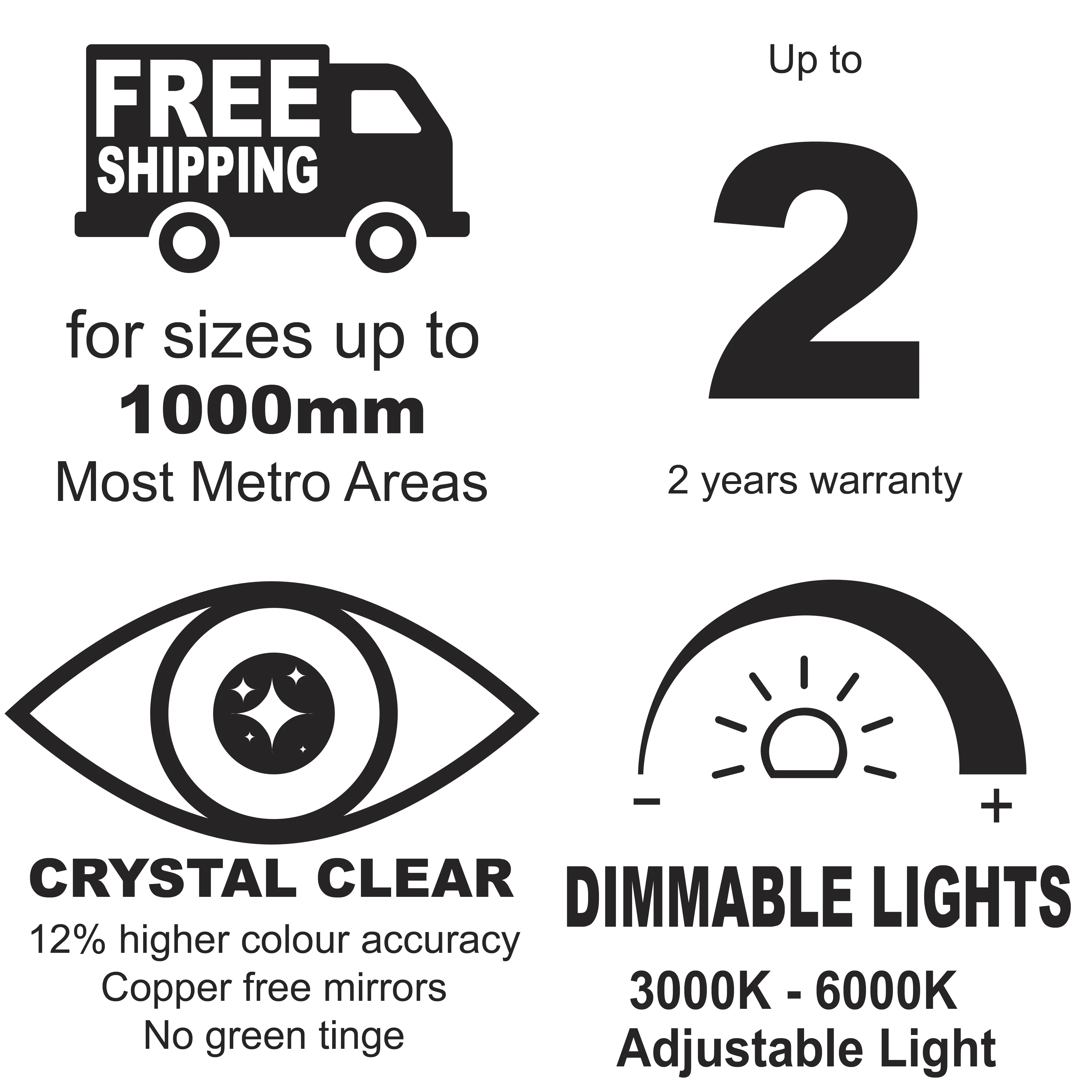 The Retti Rectangular Backlit LED Mirror features softly rounded corners, a frameless silhouette, and a polished edge that suits both modern and classic interiors. Inspired by the sleek curves of a smartphone, its shape brings a contemporary feel to bathroom walls without appearing harsh or angular. Soft backlighting creates a subtle glow around the mirror, adding ambience while maintaining a clean and minimalist look. Adjustable LED lighting allows you to control brightness and switch between cool, mid, and warm colour temperatures to suit different times of day. A built-in demister keeps the mirror clear after hot showers and operates independently from the lighting for added convenience. Designed for clarity, it features a copper-free mirror surface with up to 12% better colour accuracy and noticeably reduced green tinge. Built with premium components and resistant to rust and corrosion, it’s made to perform reliably in high-moisture environments.
