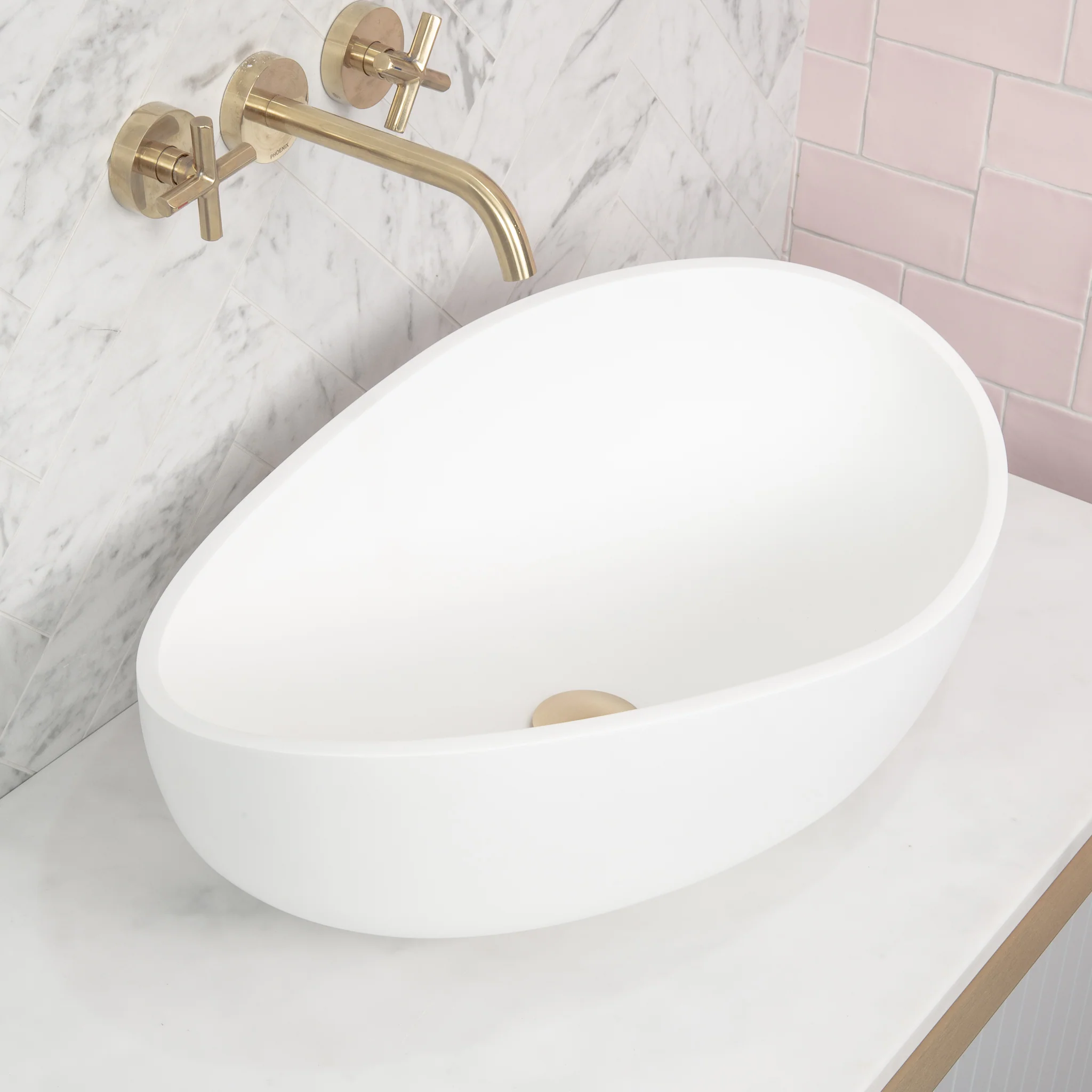 Wave Oval 600mm Artificial Stone Above-Counter Basin, Matte White
